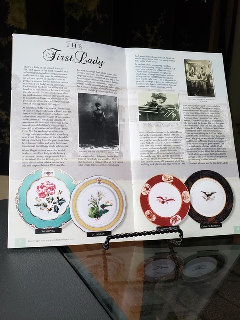 Elizabeth Monroe was the first First Lady to have an official set of White House china in 1817. Her 30 piece set was a deep red with an eagle surrounded by five images that individually represented strength, commerce, science, art and agriculture. Nearly every First Lady has followed her lead by designing and ordering their own set. Most of these can be seen at the National Museum of American History in Washington, DC or in the collections at the individual museums and libraries of the Presidents. One of my favorite collections is that of Lady Bird Johnson. Her pattern was wildflowers to represent her Highway Beautification Act; one of her many causes and philanthropies. This is a great example of a First Lady combining the political and social aspects of the role.