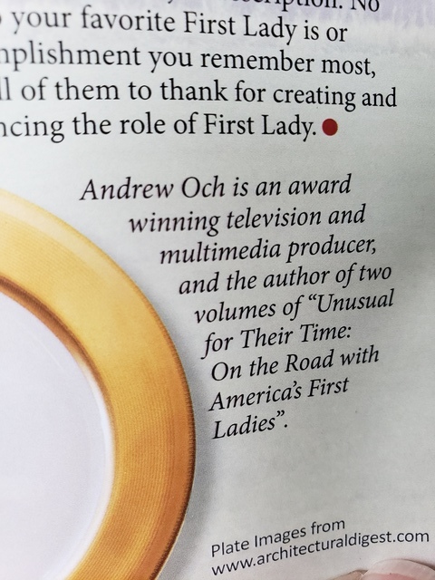 Mr. Och states, "I think it’s important to be aware of the first ladies that did things or put policies into place that are still relevant today, and not just the obvious ones we learned about in school." He brings a fresh look and a new passion to an often overlooked subject in American History.